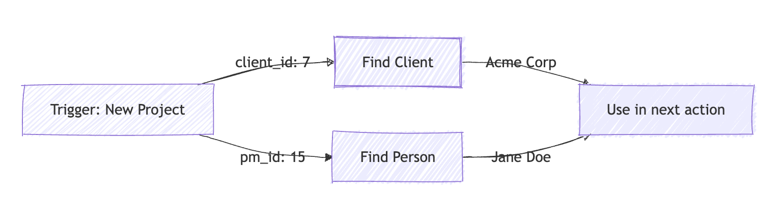7to retrieve the client's full details (name, email, etc.). - Action: Use Find Person with ID